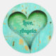 Pegatina Redonda Corazón Rústico y Verde Aca Personalizado