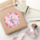 Pegatinas redondas de corazones rosados con tu nombre y Gracias (o cualquier texto) en letra chic. Crea estas pegatinas para comida, productos de belleza, favores de fiesta o cualquier cosa.