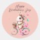 Pegatina Redonda Corazones de conejitos rosados Feliz Día de San Va