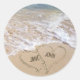 Pegatina Redonda Corazones de playa oceánica con nombres personaliz