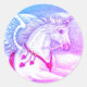 PEGATINA REDONDA CORAZONES DE VUELO UNICORN BLANCO, FANTASY PEGASUS