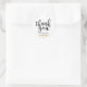 PEGATINA REDONDA CORAZONES DORADOS CONFETI GRACIAS. Con elegante letra Gracias y corazones dorados confeti. Personaliza con tus nombres y fecha. Diseñado por Pure Piglet© en www.zazzle.com/purepiglet*.