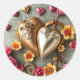 Pegatina Redonda Corazones dorados, flores rosas y amarillas Steamp