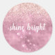 Pegatina Redonda Corazones Purpurinas Glitzy rosado