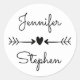Pegatina Redonda Corazones y Flechas Bodas personalizadas en blanco