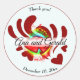 Estos románticos rojos con flores de vid gracias a los pegatinas de novios son perfectos para una encantadora recepción nupcial. El diseño tiene una combinación de corazones floridos para mostrar amor, romanticismo y delicadeza. Una gran manera de celebrar el amor y el matrimonio. El pegatina puede ser personalizado con el nombre y la fecha de la pareja. ¡Consigue tu ahora!