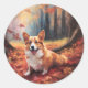 Pegatina Redonda Corgi en otoño se inspira en las hojas