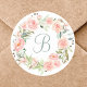 Pegatina Redonda Corona de flores rosa pastel monogramada