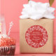 Pegatina Redonda Corona de Navidad Feliz Personalizada Roja y Blanc