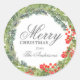 Pegatina simple, moderna y rústica de Feliz Navidad personalizada en rojo y verde con ramas de bayas de acebo y follaje.