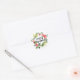 Pegatina Redonda Corona de pino y acebo en acuarela Feliz Navidad