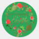 Celebra el momento más maravilloso del año y personaliza tus regalos de Navidad durante la temporada navideña de la manera más cómoda con adhesivos de Navidad. Con una ilustración de corona digital en dorado, rojo y verde con texto dorado "Merry Christmas" sobre fondo verde, este adhesivo redondo clásico es perfecto para añadir un toque personalizado a tus detalles de fiesta, decorar sobres, etiquetar regalos o de muchas otras maneras.
