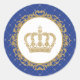 Pegatina Redonda Corona Dorada Real Azul Bebé Príncipe 1er Cumpleañ