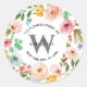 Pegatina Redonda Corona floral Boho Monograma Dirección de devoluci