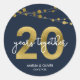 Este elegante pegatina redondo del 20° aniversario del boda presenta cuerdas de luces y "20" en oro falso con "años juntos" en blanco contra un fondo azul oscuro. Consulta la invitación coincidente y elementos como pegatinas y sellos aquí https://www.zazzle.com/collections/strings_of_lights_faux_gold_celebration_collection-119311942951401241?rf=238364477188679314 Personalízalo con tus detalles reemplazando el texto del marcador de posición. Para obtener más opciones, haga clic en el botón "Personalizar". *Tenga en cuenta que la marca de agua Zazzle que aparece en la vista previa del zoom NO aparecerá en el producto impreso final. © Rosewood y Citrus