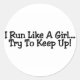 Pegatina Redonda Corro Como Un Chica Tratando De Mantenerme Al Alza