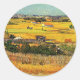 Pegatina Redonda Cosecha en La Crau, con Montmajour...