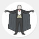 El diseño del Conde Drácula Vampire muestra el recuento de brazos estirados con capa detrás en una típica pose aterradora. Un toque de dientes afilados, el pelo y el broche especial son dádivas a la mala intención del Conde.