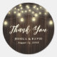 Pegatinas de bodas rústicos con luces de cuerda en un fondo de madera de granero. Personalice fácilmente estos pegatinas redondos de agradecimiento boda con los detalles de su boda. Estos pegatinas son perfectos para su fiesta de bodas rústica temática. Puede utilizarlos como sobres sellos o etiquetas de bolsos de favoritas de boda, por ejemplo. Elementos coincidentes disponibles.