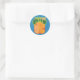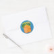 Se han enlatado melocotones frescos en un frasco de vidrio con un paño verde cubriendo la parte superior. Una cuerda rústica está atada alrededor de la parte superior del frasco en un arco. Los pegatinas son un toque de acabado especial en sobres, paquetes, calendarios, álbumes y objetos personales. Pares con la tarjeta de vida en blanco de la Feria del País.