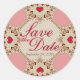 Pegatina Redonda Country Heart Lace Guardar la fecha
