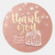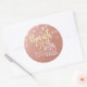 Plantilla de Pegatina de agradecimiento a favor de la boda - Guión de letras elegantes y Pareja de época mason Jars y String Lights sobre fondo de textura de Relieve metalizado dorado Rosa. Un diseño perfecto para tu gran día. ¡Todo el estilo de texto, colores, tamaños se pueden modificar para adaptarlo a sus necesidades!