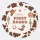 Cowboy First Rodeo Wild West Birthday party Classic Round Pegatina disponible.
