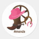 Un ilustracion gráfico de gorra de vaquera y botas de vaquera sobre un pegatina.