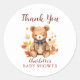 Add a heartwarming touch to your baby shower favors and envelopes with these adorable autumn teddy bear thank you stickers. Featuring a sweet watercolor teddy bear nestled among vibrant fall leaves in shades of brown, orange, and yellow, this design perfectly captures a cozy, woodland baby shower theme. Ideal for expressing gratitude, these gender-neutral stickers are perfect for sealing envelopes, decorating favor bags, or adding a special touch to your thank-you notes.