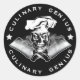 Muestre apagado su orgullo del cocinero del asesino con este diseño temático culinario único del cocinero del cráneo, ofreciendo un fresco y con clase metálico-como el cráneo que lleva su gorra de los cocineros. Dos cuchillas que fuman cruzadas substituyen su bandera pirata tradicional. El genio culinario del título está arqueado a lo largo del top y de la parte inferior de este producto, en el texto intrépido del copperplate, seguro de dejar cada uno saber que usted es cocinero profesional de la alta estatura, y todo sobre cocinar sensato. Esta imagen digital imprescindible del cráneo del cocinero fue creada para los cocineros, los cocineros, los propietarios de restaurante, y cualquier persona con una pasión feroz para la comida y el sabor. Y cráneos. Visite www.zazzle.com/thechefshoppe para ver cráneos de cocinar más frescos del cocinero diseñados por sdesiata.