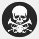 Pegatina Redonda Cráneo con las trompetas como bandera pirata