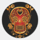 Pegatina Redonda Cráneo de azúcar con Rosas, amarillo y rojo