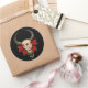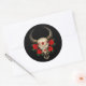 Pegatina Redonda Cráneo de azúcar de toro con rosas rojas en negro