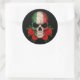 Pegatina Redonda Cráneo de bandera italiana con rosas rojas