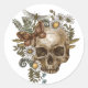 Pegatina Redonda cráneo de flores vintage gótica y mariposas