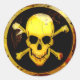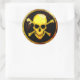 Pegatina Redonda Cráneo de oro de estilo ondulado y huesos cruzados