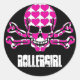Calavera y huesos cruzados llenos de corazones rosados calientes.