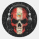 Pegatina Redonda Cráneo peruano rasguñado de DJ con los auriculares