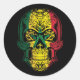Pegatina Redonda Cráneo Senegal Y Bandera De Los Rosas