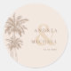 Pegatina Redonda Cream Palm Trees & Ampersand Names Boda
