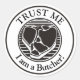 Créeme, soy un carnicero escrito dentro de un círculo con un filete de hueso.