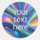 Crea tu propio pegatina personalizado personalizado con texto o usa fondo holográfico luminoso que puedes CAMBIAR de texto Haz que tu mensaje destaque con este llamativo pegatina personalizado con un fondo luminoso de estilo holográfico. Fácilmente personalizarlo con tu propio texto, ya sea un nombre, marca o nota especial. Perfecto para portátiles, empaques, fiestas, scrapbooking o branding. Añade un estilo futurista y divertido con este diseño vibrante que refleja la luz y el estilo. Ideal para quien quiera crear un toque atrevido y personal. Con esta herramienta de diseño fácil de usar es tan simple como eso hacer que tu imagen se pegue en la mente de alguien. Haga clic en personalizar, simplemente puede cambiar el texto aquí - o para eliminar el texto o cambiar el tipo de letra, sólo tiene que hacer clic en el enlace debajo del cuadro de texto que dice "Haga clic en el personalizar más adelante". Y ahí tienes a tu propio pegatina personalizado.