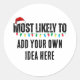 ¿Buscando equipo de Navidades divertido, peculiar y personalizado? ¡Nuestro texto de plantilla "Más probable de" es justo lo que necesita! Puedes transferir el diseño a camisetas de moda para viajar con tazas y pegatinas, esta colección es perfecta para mostrar tu ambiente único. Aquí se incluyen toneladas de ideas para que fluyan tus jugos creativos. Ideas de regalo perfectas para amigos, familia, jefe, compañero de trabajo, colega, profesor, niños, adultos, madres, papás y más! Ya sea que estés "Más probablemente atrasado en clase", "Más probable que te encuentren en Brunch", o incluso "Más probable que te hagas una siesta en cualquier parte", tenemos el artículo perfecto para ti. Con diseños populares como "Lo más probable es que gane en Trivia", "Lo más probable es que traiga aperitivos" y "Lo más probable es que se vuelva viral", esta colección se trata de celebrar los momentos divertidos y relacionados que te hacen, bueno... ¡tú! Prepárate para mostrar tu personalidad con estilo, sin importar a dónde vayas. Temas más divertidos como "Lo más probable": "Lo más probable es que empieces a ser Fiesta de danza", "Lo más probable es que tomes una orden", "Lo más probable es que seas la vida del Fiesta", "Lo más probable es que veas una serie", "Lo más probable es que te tomes un selfie". Olvidar sus llaves", "Lo más probable es que se rompan en la canción", "Lo más probable es que se pongan pijamas todo el día", "Lo más probable es que se hagan un viaje espontáneo por carretera", "Lo más probable es que se le diga a un Chiste de papá", "Lo más probable es que se hagan muchas citas de películas", "Lo más probable es que se tarde de moda" "Las plantas," "Lo más probable es que beban todo el café", "Lo más probable es que duerman a través de la alarma", "Lo más probable es que pospongan el tiempo", "Lo más probable es que sobreempaquen", "Lo más probable es que ganen una discusión", "lo más probable es que se rían de ti", "Lo más probable es que Mascota a cada perro", "lo más probable. Manténgase al día demasiado tarde", "Lo más probable es que sea anfitrión de una noche de juegos", "Lo más probable es que sea un perfeccionista".