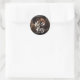 These custom round stickers feature your photo as the background, creating a beautiful and personal design perfect for a variety of uses. A subtle black gradient behind the text ensures “Mr. & Mrs” in large white handwritten script stands out clearly, while the wedding date appears along the bottom in a clean serif font for a classic and balanced touch.