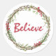 Elegante y moderno sello para sobres festivo o pegatina de regalo para Navidades con el texto 'Believe' en caligrafía de escritura de moda roja y un elegante toque de vegetación de invierno y flores de bayas. Diseñado exclusivamente para usted por Happy Dolphin Studio. Si necesita ayuda o productos coincidentes, póngase en contacto con nosotros en happydolphinstudio.com.