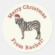 Este lindo y personalizado crema Merry Christmas Santa Zebra clásico pegatina redondo le dará a sus regalos un toque personal fácilmente. Puede editar el texto si hace clic en el botón personalizar y cambia el estilo de fuente, color y texto. Sus regalos tendrán un toque personal único con este ilustracion crema de Santa Zebra de Happy People Prints. Es una buena manera si quieres un tema animal para tus regalos navideños este año. Echa un vistazo a los otros productos a juego para tener hermosos regalos de Navidades bajo el árbol de Navidad este año.