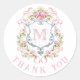 Pegatina Redonda Crest Floral Monograma Grandmillennial | Novia