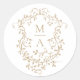 Pegatina Redonda Cresta Floral Clásica Dorada Monogramas