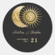 Pegatina Redonda Crestón de Monograma de Sol y Luna Negro Celestial