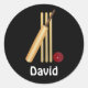 Pegatina Redonda Cricket - Wicket, murciélago y bola, plantilla